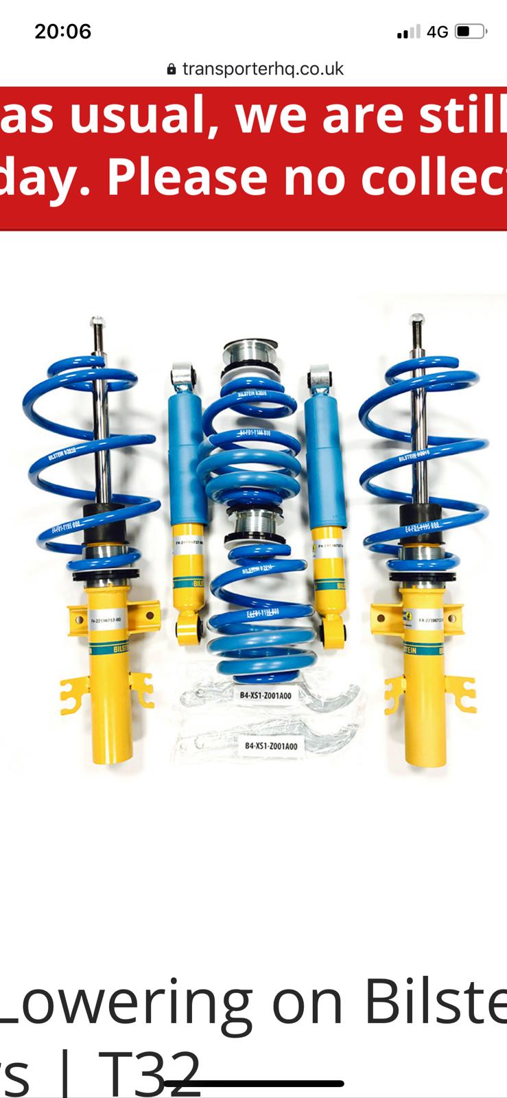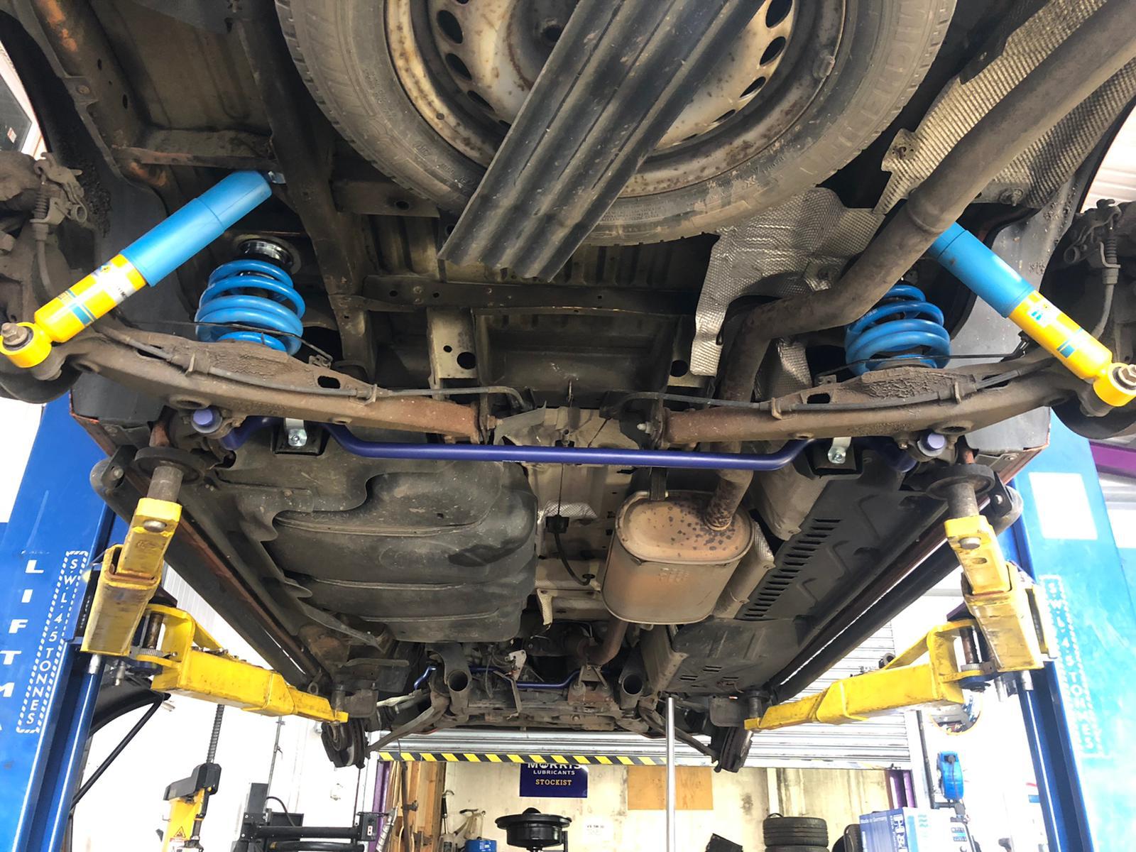 VW transporter T5 in for Bilstein b14s coilovers and H & R front and rear anti roll bars. Dramatic increase in drivability and comfort. Bilsteins are £1095 with free fitting.